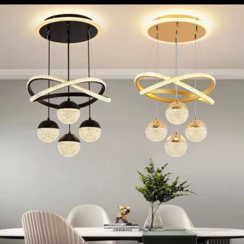 Chandelier, Simple Home Pendant Light Black Led Pendant Light Compatible with Living Room Dining Room Kitchen Suspension Light Gold Indoor Lighting