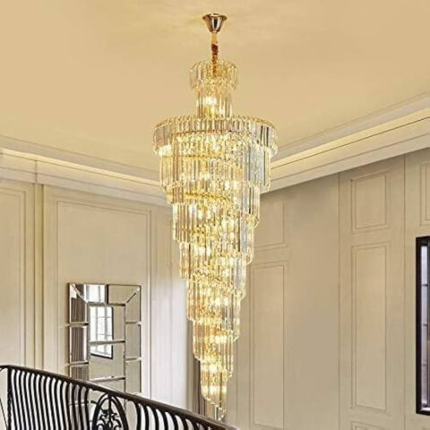 Modern Crystal Staircase Chandelier – Elegant Long Design for High Ceilings